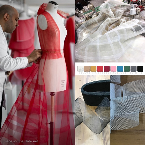 Nẹp lưới Horsehair - Bản 1.5cm - làm phồng xòe đầm khiêu vũ, dạ hội, váy cưới #021101